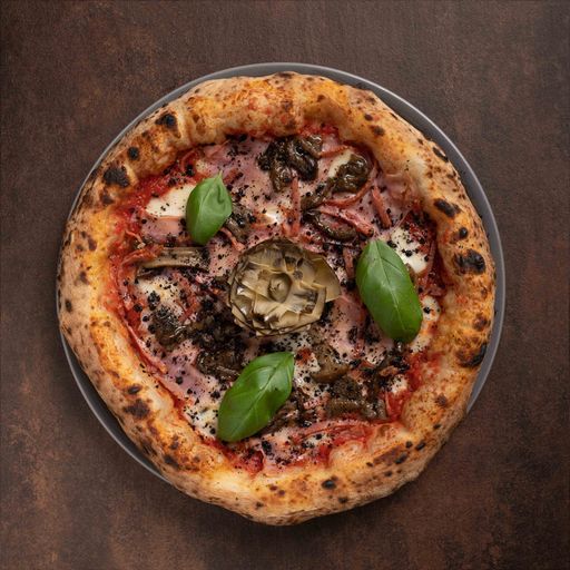 base pomodoro, fior di latte, prosciutto cotto, salame Napoli,